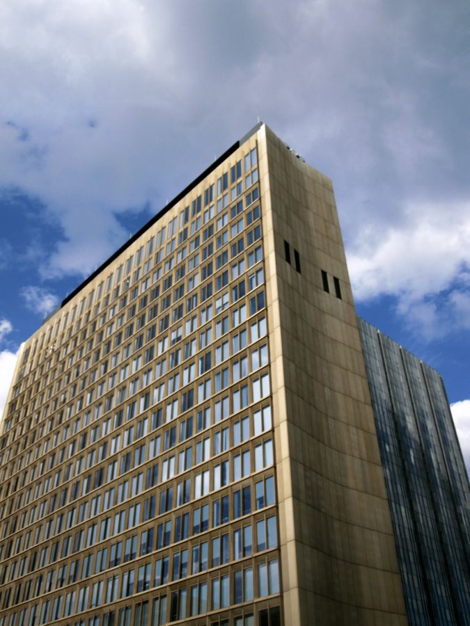 Arkitektur på hjørnet af Max-Beer Strasse - gaden, hvor Exberliner ligger på.