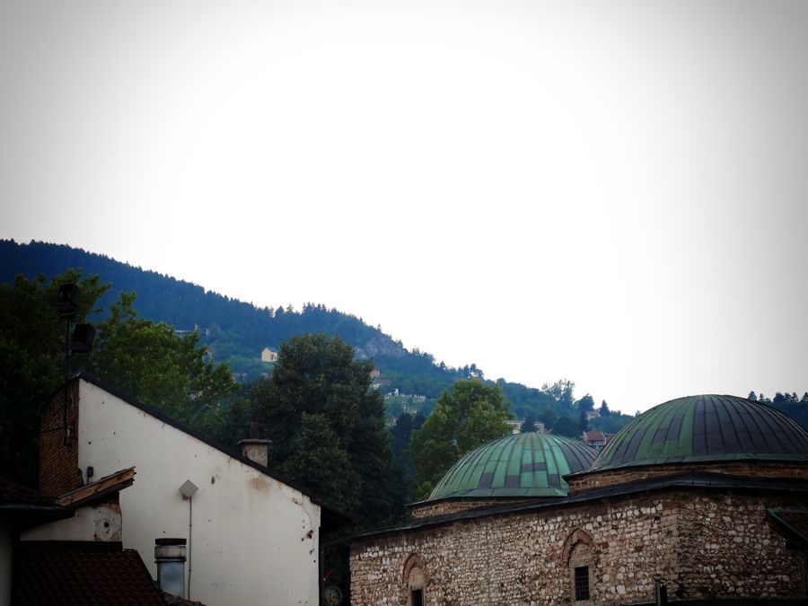 I was a little drunk when boarding the bus from Beograd to Sarajevo so I quickly fell asleep. As always we were woken up several times to show passports and tickets, but we were nonetheless able to sleep a little more in the bus than in the trains. When we woke up, the morning had just broken, and we saw a city covered in fog and surrounded by mountains. That was Sarajevo.